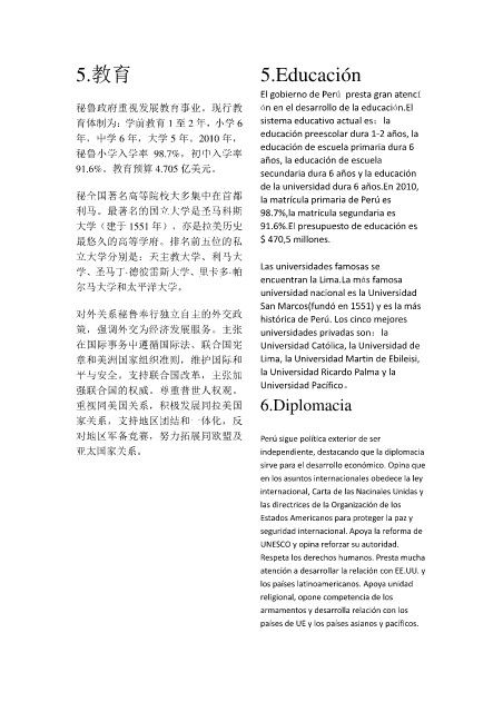 秘鲁政府重视发展教育事业。现行教 ón en el desarrollo de la educación.El