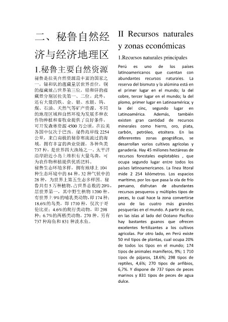 二、秘鲁自然经 II Recursos naturales