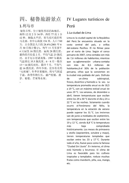 四、秘鲁旅游景点 IV Lugares turísticos de