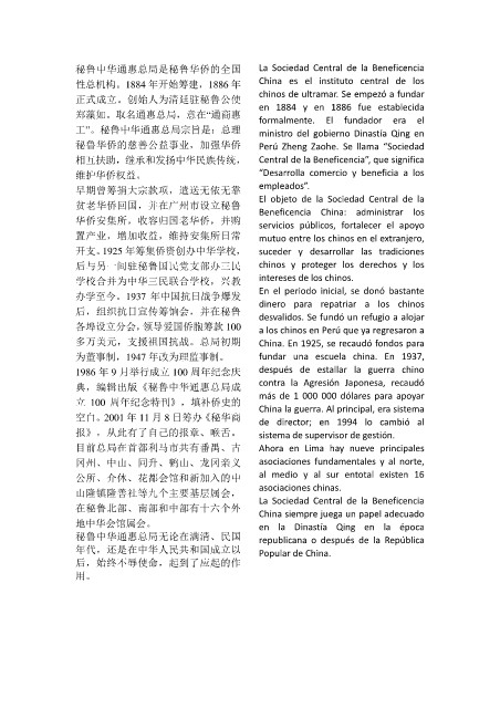 秘鲁中华通惠总局是秘鲁华侨的全国 La Sociedad Central de la Beneficencia
