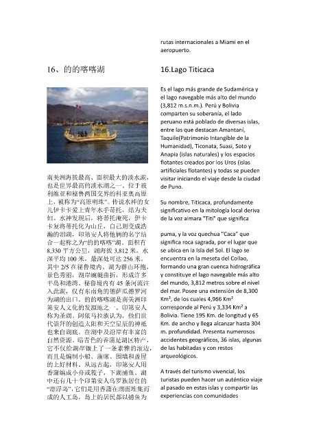 半岛和港湾。秘鲁境内有 45 条河流注 del mundo, 3,812 metros sobre el nivel