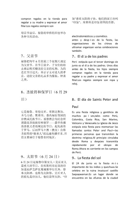 9、太阳节(6 月 24 日) 9、La fiesta del sol