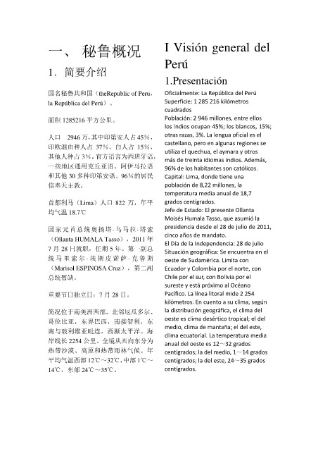 国名秘鲁共和国(theRepublic of Peru, Oficialmente: La República del Perú
