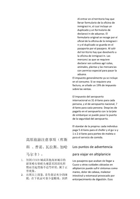 1. 初到 CUSCO 城或其他高原城市的 Los pasajeros que acaban de llegar a