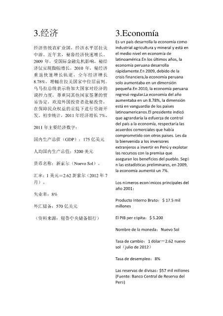 中游。近年来,秘鲁经济快速增长。 el medio nivel en economía de