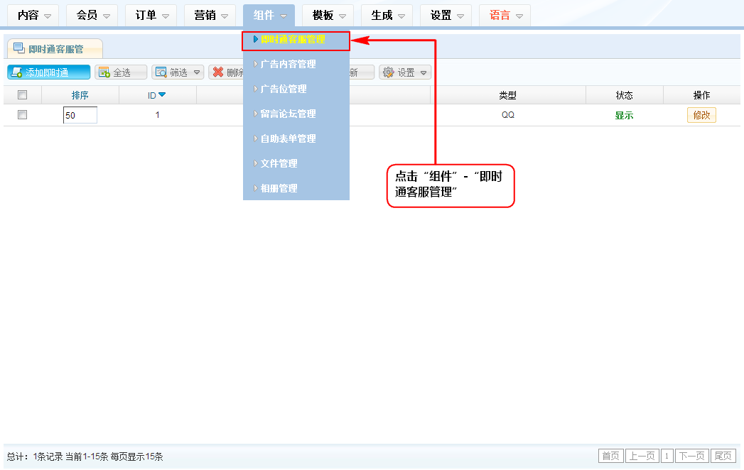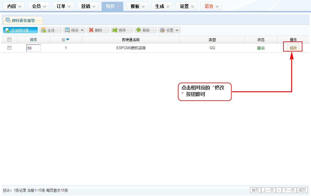 2、在即时通客服列表区双击您要修改的即时通客服,或者点击相对应的“修改”按钮即可。