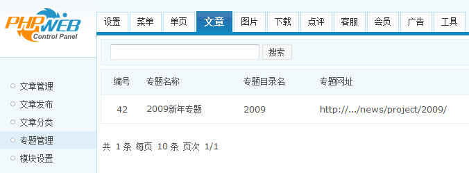 PHPWEB文章模块支持文章专题,专题具有可自定排版的专题主页