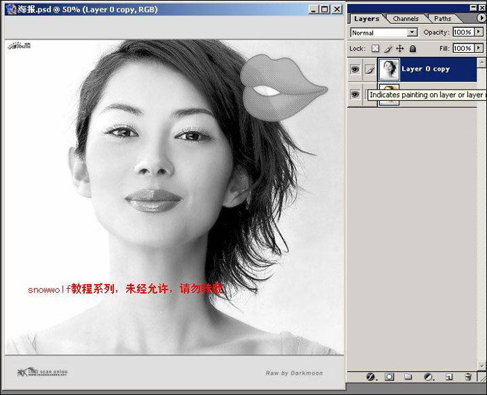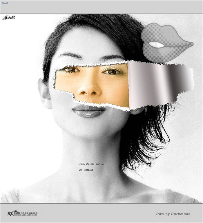 | 8、将layer 0 copy和layer 0 copy 图层合并,然后对其执行阴影效果,最后作出撕出的纸片(随便作个渐变填充就行了,这个我不用说了吧),ok,制作完成。 |