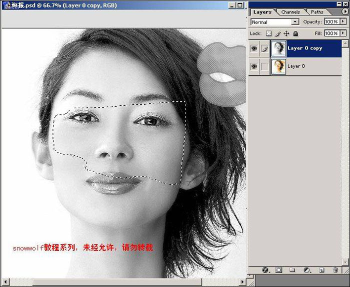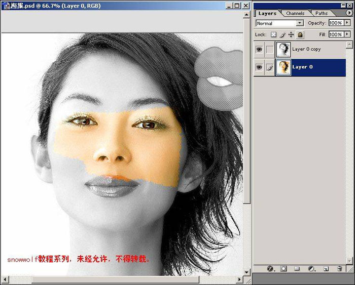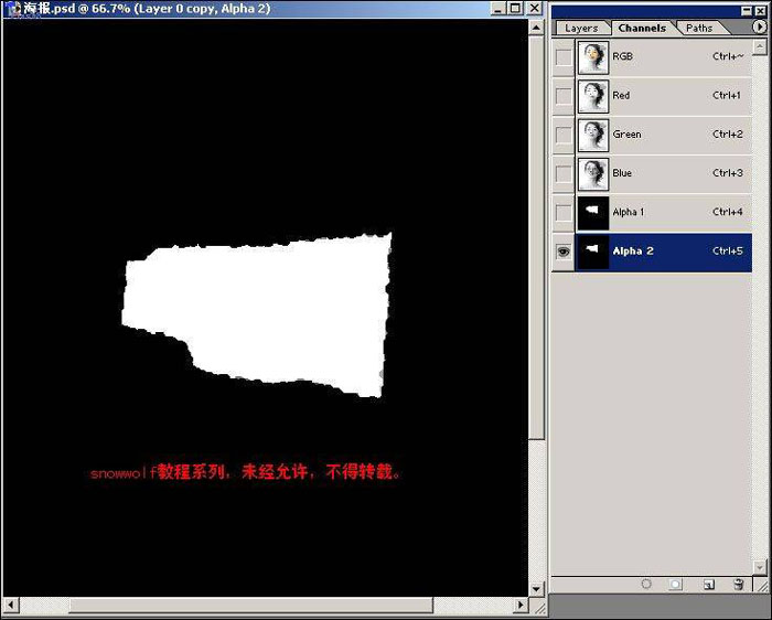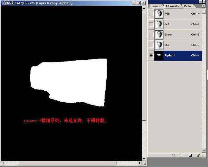 | 5、回到图层中,选中layer0 copy层,按ctrl+alt+4读取alpha1通道的选区,按del删除。 |