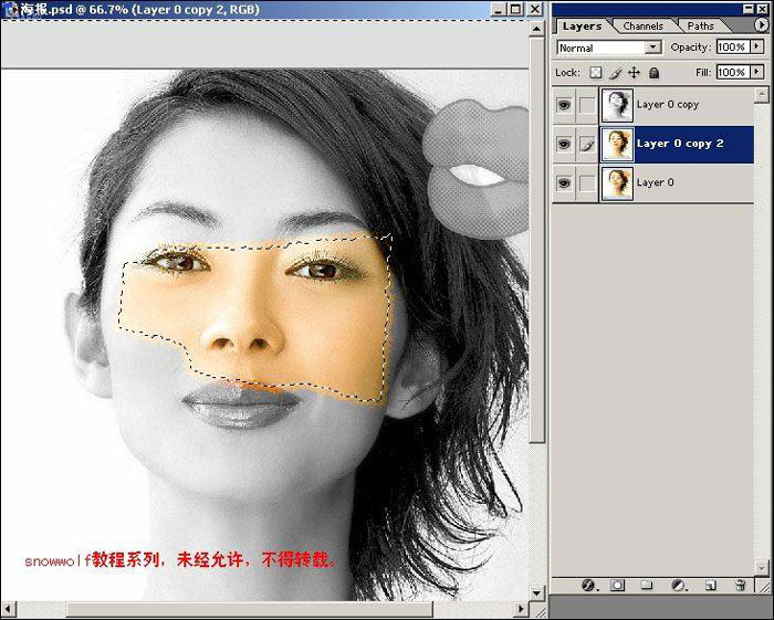| 8、再次复制layer0图层,得到layer 0 copy 2,按ctrl+alt+5,等到alpha2通道的选取。如图 |