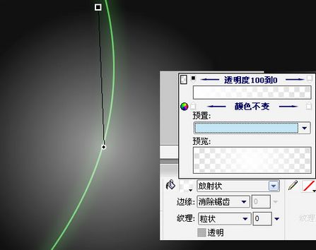 | 5.这时,路径就有了首尾渐隐的效果。我们这时还可以调节手柄来调节渐变的细节。 |