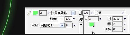 | 1.先新建一条绿色的弯曲路径,选择发光滤镜,设置如图: |