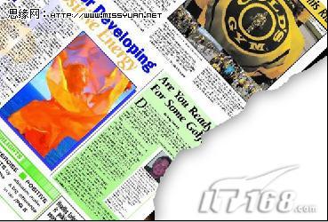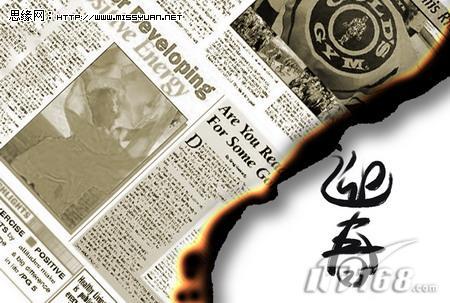 | 7、打开一幅报纸图片,讲报纸拖拽到文件中生成图层4,调整大小和位置,如图08所示。 |