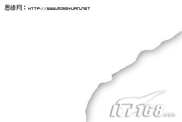 | 4、在图层1的上面新建一个图层图层2,按Alt+Ctrl+G快捷键,使图层2成为图层1的剪贴蒙版图层,然后选择工具箱中的“画笔工具”,确定前景色为黑色后,在图层2中沿纸的边缘涂抹,效果如图05所示。 |