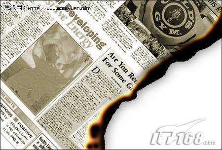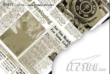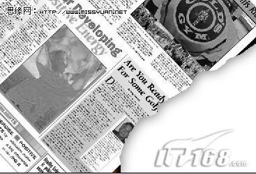 | 8、选择图层4,按Alt+Ctrl+G键,效果如图09所示。接着按Ctrl+Shift+U键,将报纸去色,效果如图10所示。 |