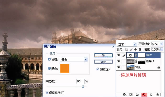 2、点击图层——新调整图层——照片滤镜,如下图设置: