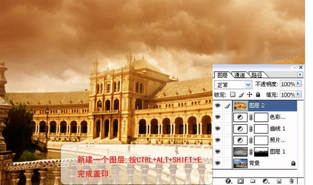 5、新建一个图层,按CTRL+ALT+SHIFT+E完成盖印。