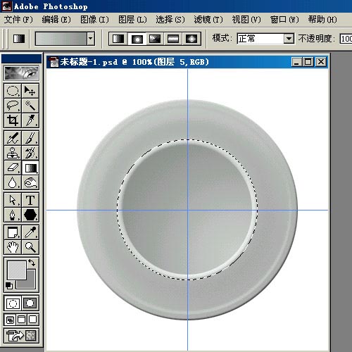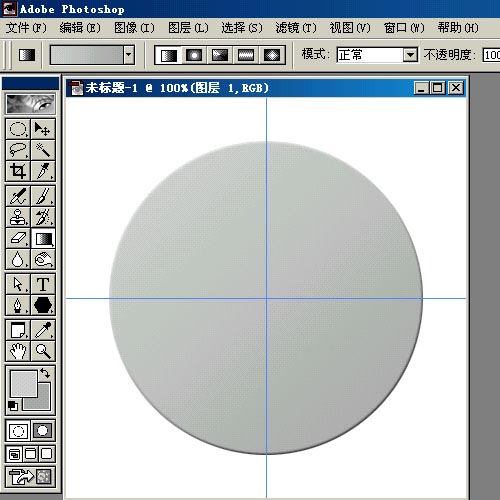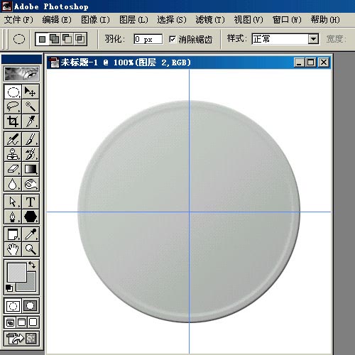 | 5.盘子好了,把文件夹折叠起来。新建一个图层组,命名“杯子”,在组内新建一层,用椭圆工具画出杯口的大圆,设置前景色为20%灰色,背景色为10%灰色,由左上至右下拉出线性渐变。将选区储存起来, 取消选择,再画个小一点的圆,删除。这个内沿的选区也要储存。 |