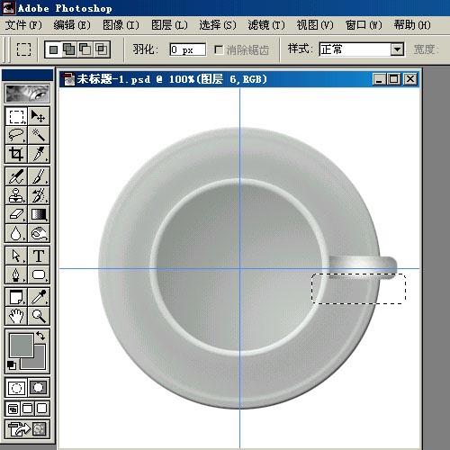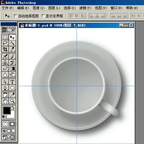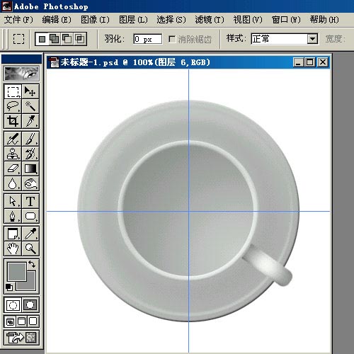 | 7.在这一层的下面新建一层做杯底,在通道中调出杯口外沿的选区,设置前景色为20%灰色,背景色为40%,由右下向左上拉径向渐变。 |