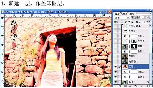 | 4、新建一层,按快捷键:Ctrl+shift+alt+E,作“盖印图层”。 |