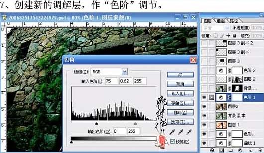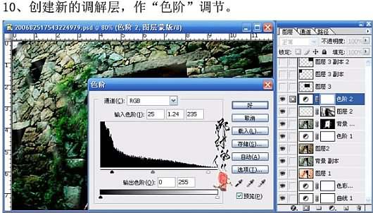 | 7、创建新的调解层,作“色阶”调节,参数如下图设置: |