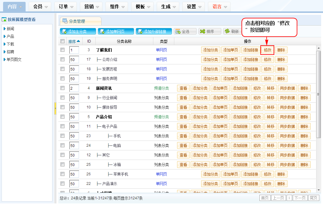 二、分类修改